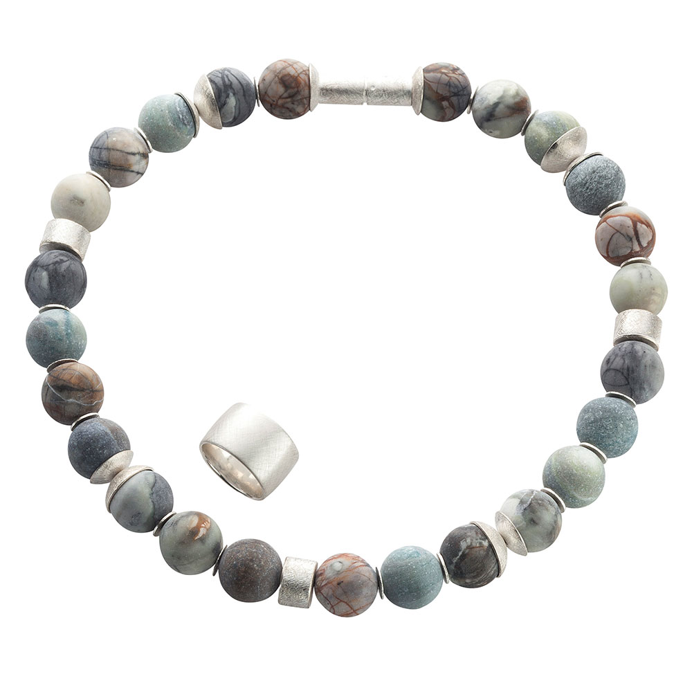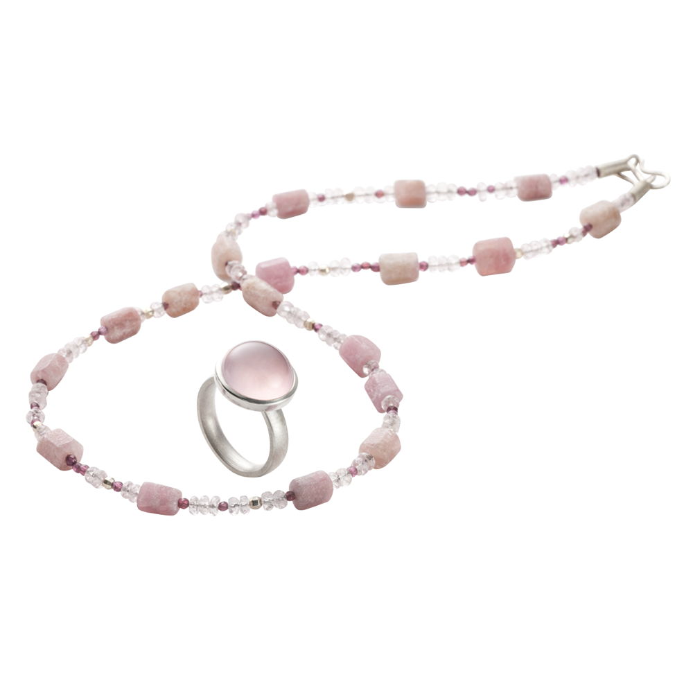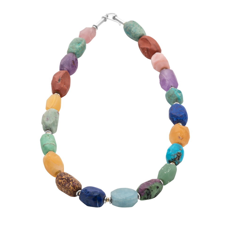 Beryll, Jaspis, Lapislazuli, Türkis, Amazonit, Amethyst, Karneol, Aventurin, Ziosit- Rubin und Silber
